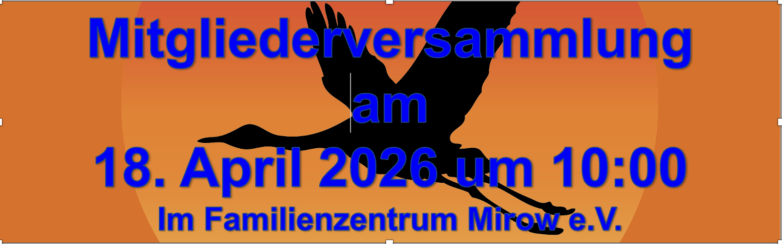 Das Protokoll und alle weiterführenden Informationen zur Mitgliederversammlung am 13. April im Familienzentrum Mirow finden sie Sie jetzt bei den Dokumenten/Archiv unter Mitgliederversammlung 2024